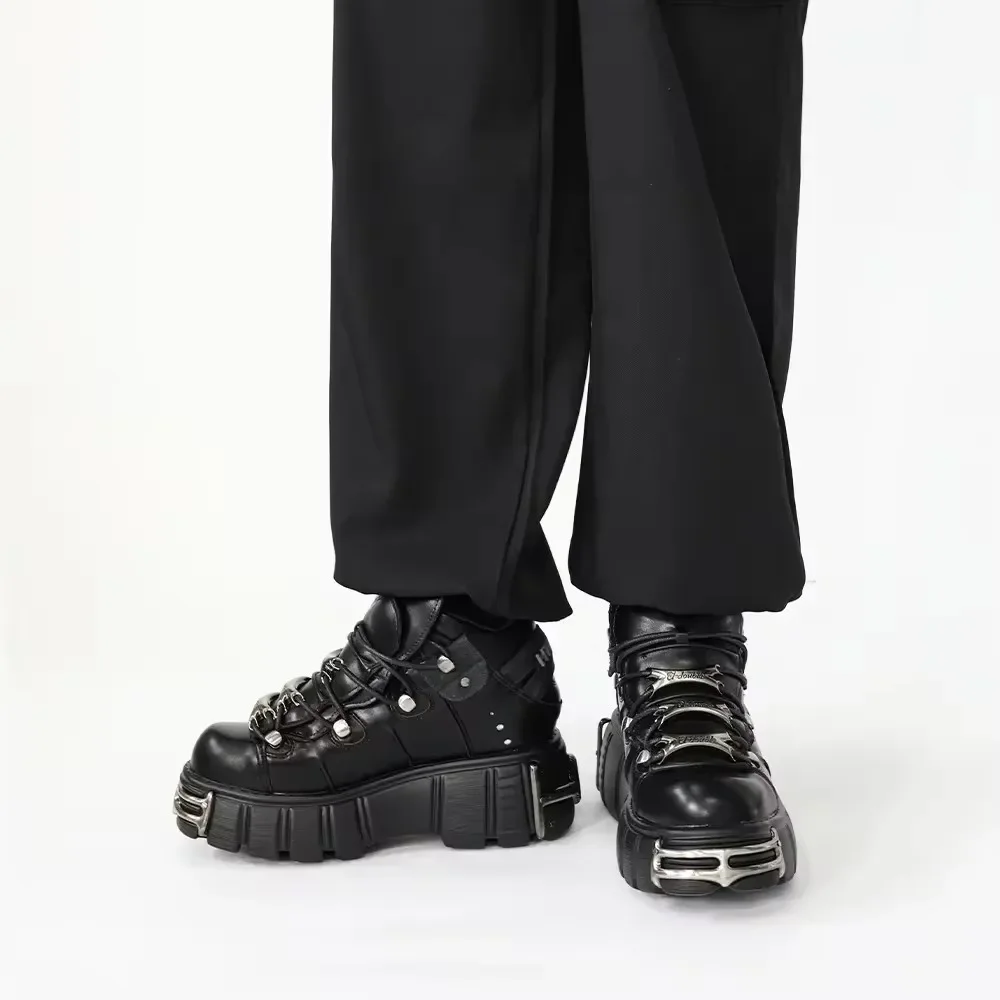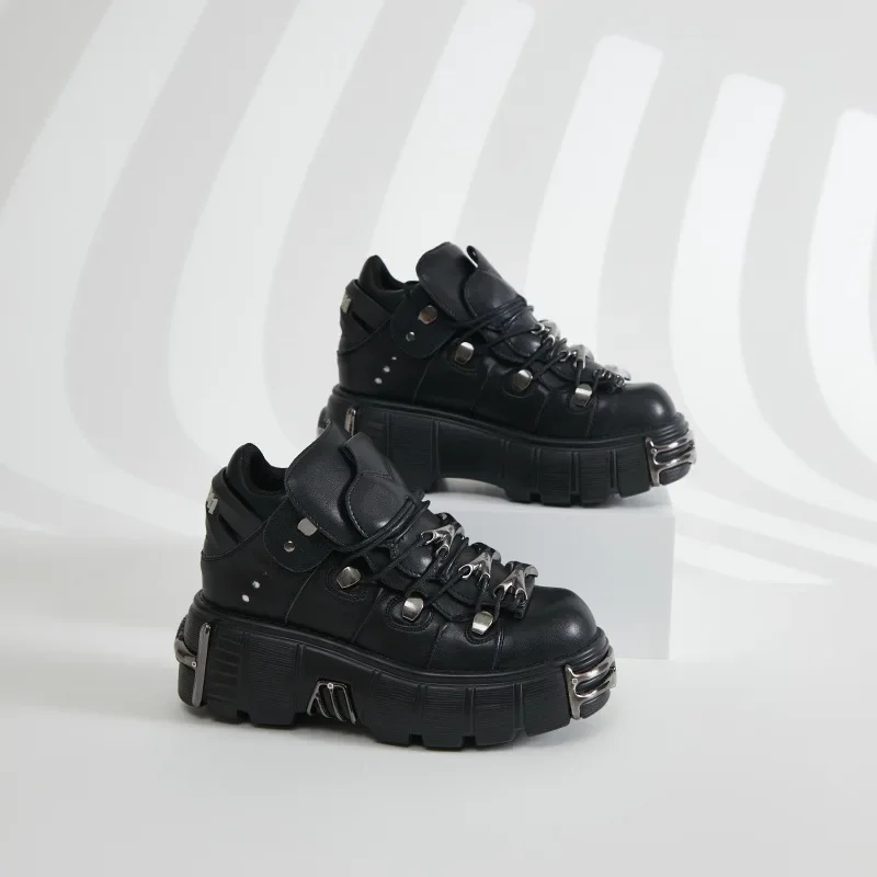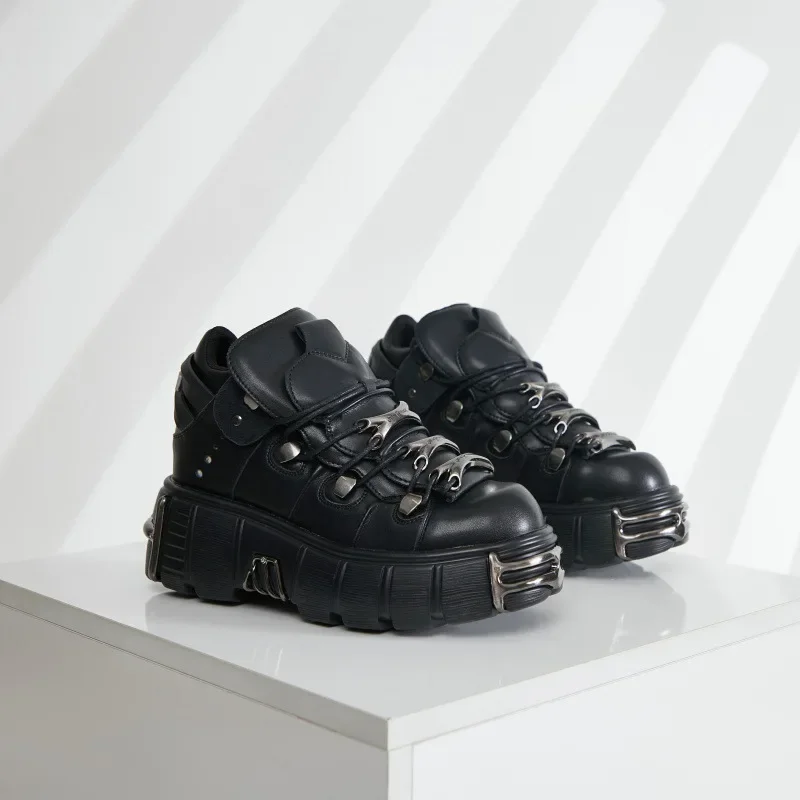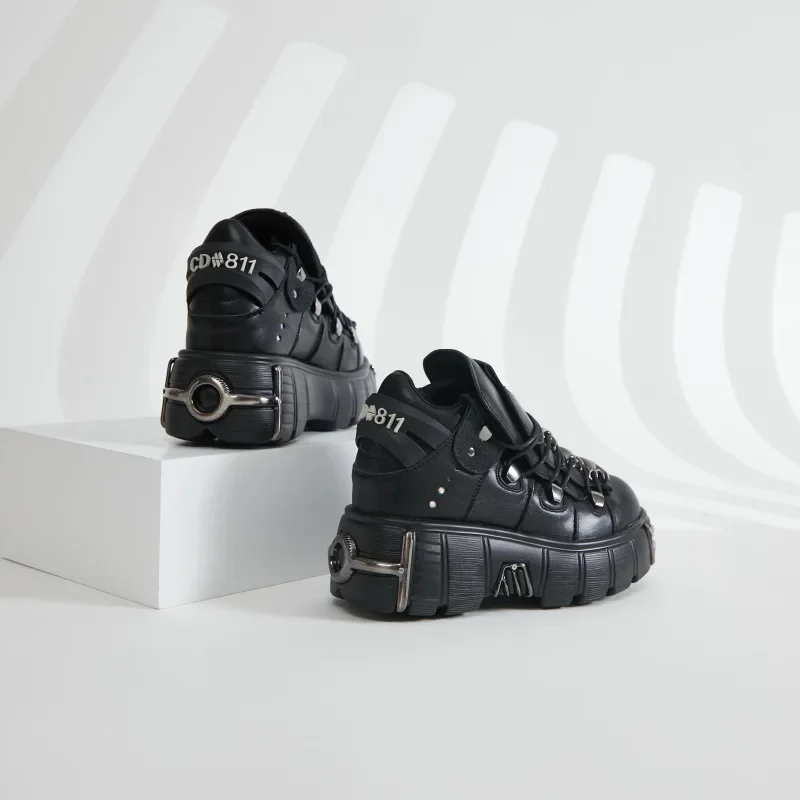 2025 NEW Punk Style Women Shoes Lace-up Heel Height Platform Shoes Woman Gothic Ankle Rock Boots Metal Decor Woman Sneakers 45