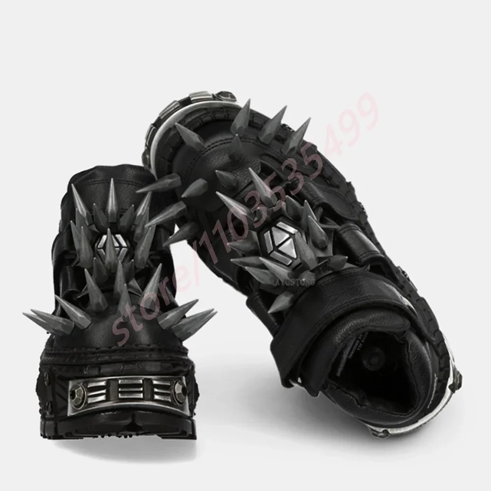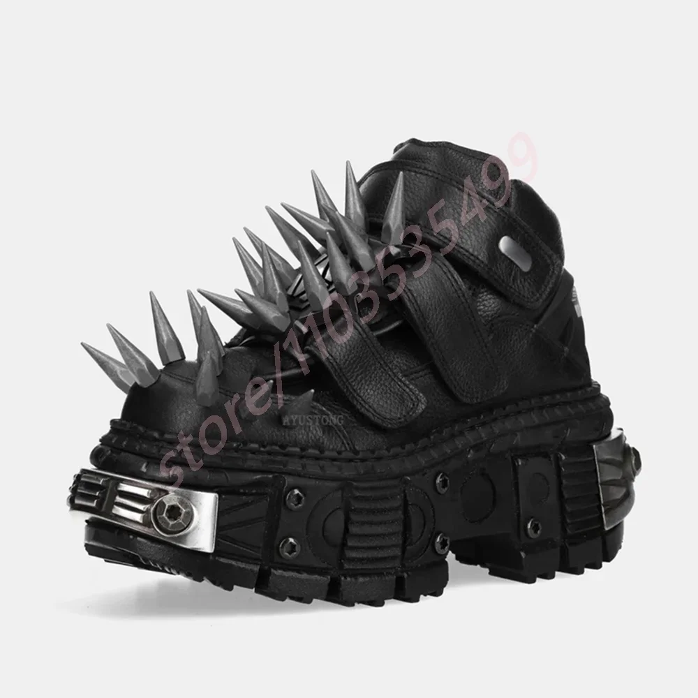 Product Name:Black Thick Sole Spiked Rivet Motorcycle Boots Round Toe 2025 New Punk Rock Street Sports Casual Short Boots Fashion Ankle Boots