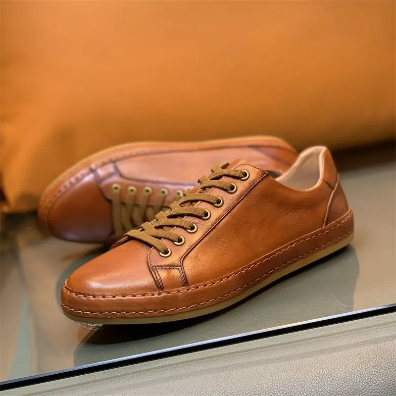 European classical Collection 2025 Premium Vintage genuine Leather Sneakers Business Casual Men’s Shoes