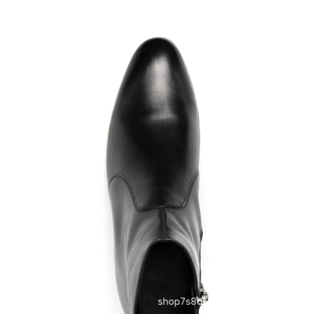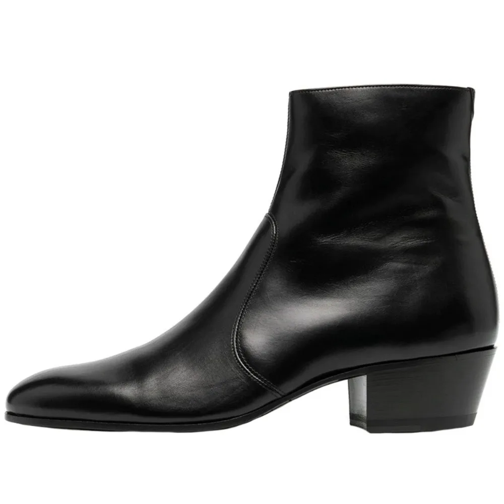 Man Chelsea Boots Genuine Leather Ankle Business Round Toe High Heels Mens Boots Size 37-46 Men Shoes Mens Boots