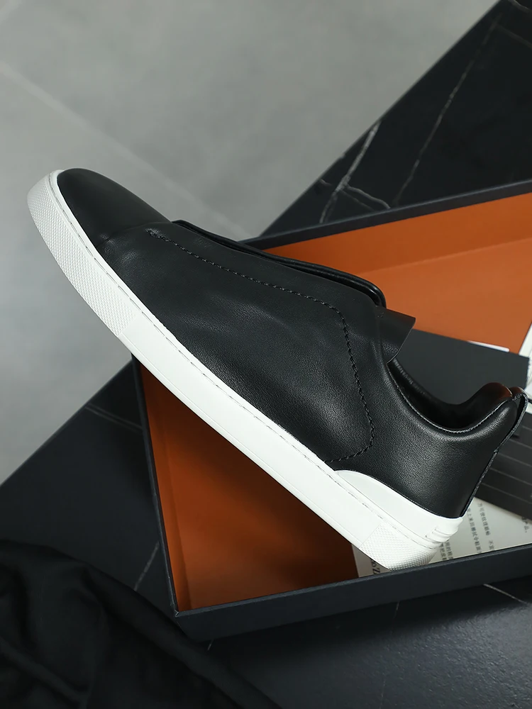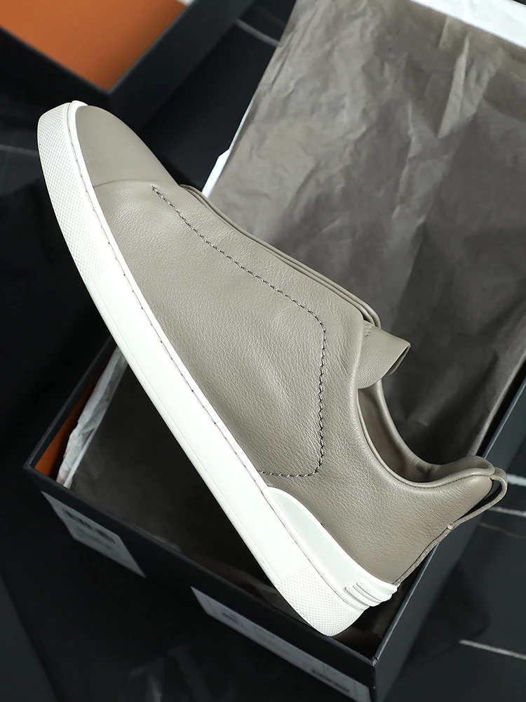 Real leather men’s casual skateboarding shoes hiking flat footed low top sports shoes men’s off white loafers lazy white shoes