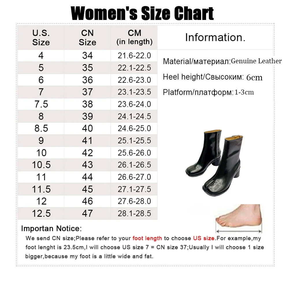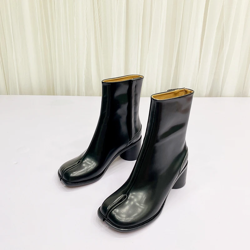 Unisex Real Leather Ninja Tabi Boots Women Split Toe Boots Women 6cm High Heels Women Shoes Winter Ankle Boots Botas de mujer