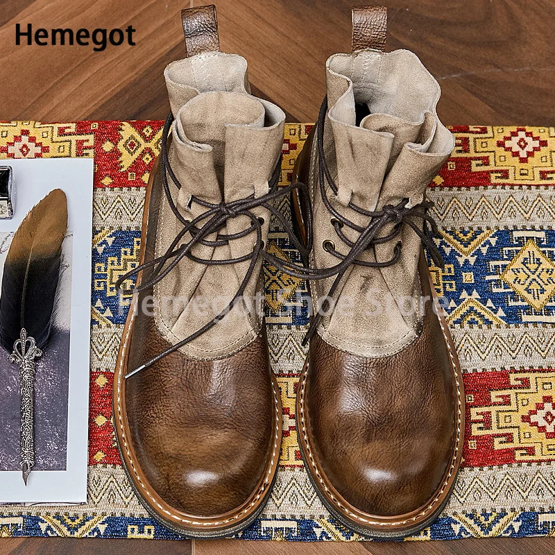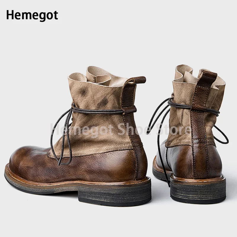 Vintage Round Toe Handmade Boots for Men British Style Leather Cowhide Men’s Lace-Up High Top Brown High Quality Booties