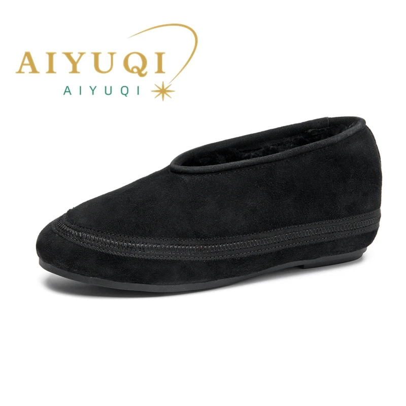 AIYUQI Winter Flat Shoes Women 2025 New Fur Lining Warm Women Snow Shoes Genuine Leather Comfortable Female Winter Ballet Shoes