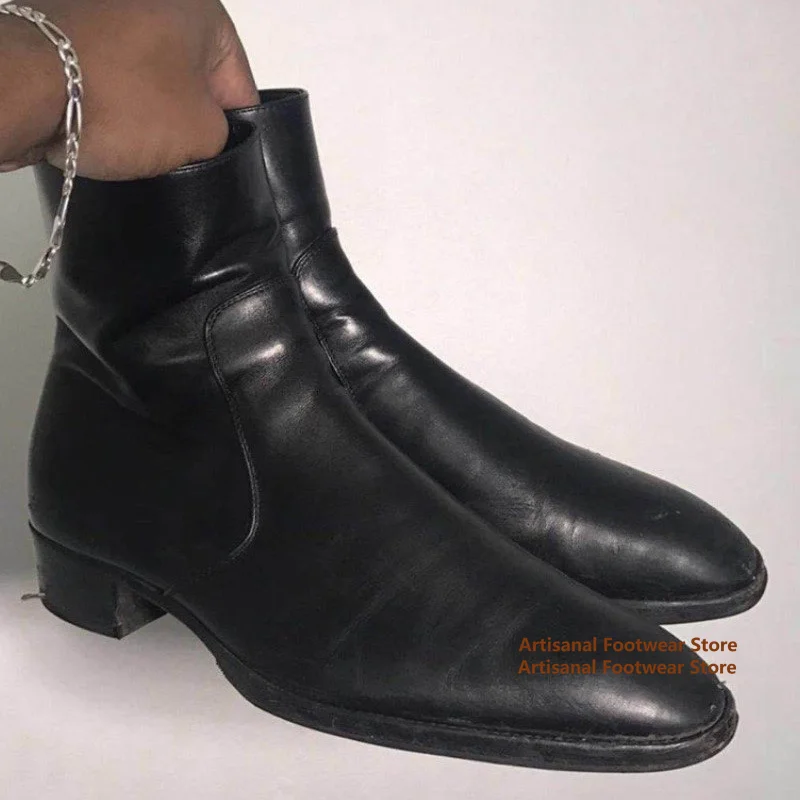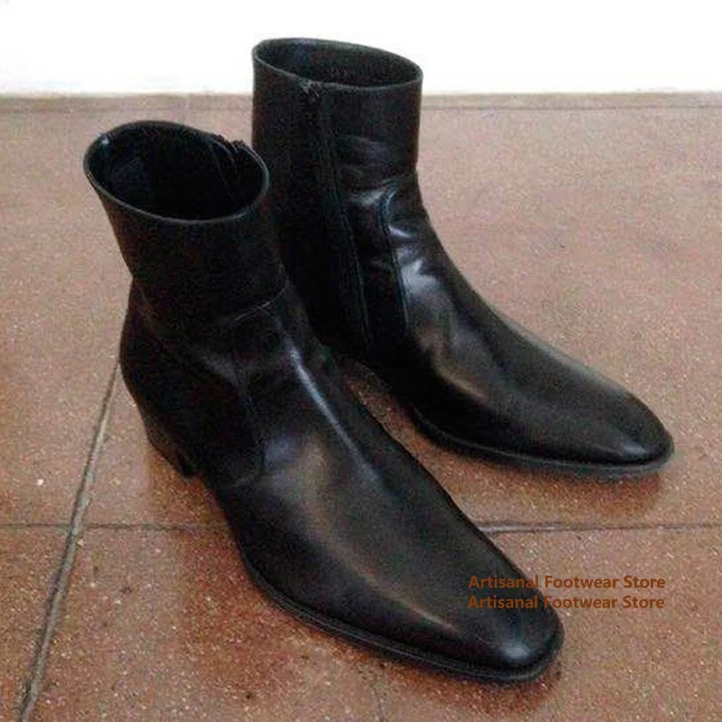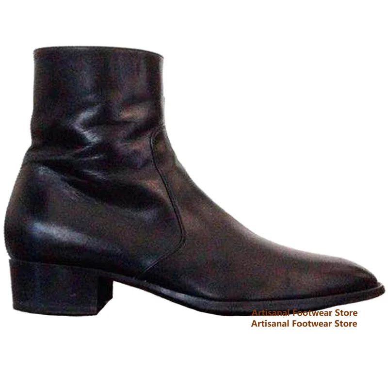 High-Top Chelsea Boots for Men Height Increasing Side Zipper Boots Handmade Custom Handsome Men Shoes Designer Men Boots