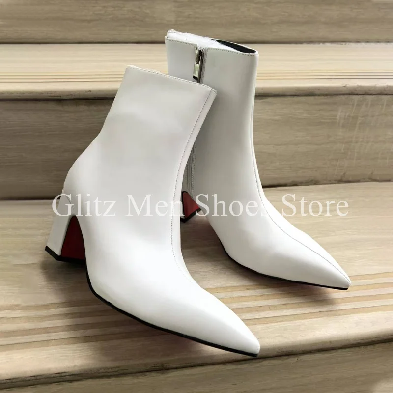 Pointed White Chunky Heel Boots For Men Ankle Boots High-heeled Zipper Black Fashion British Style Handmade Shoes Men Boots