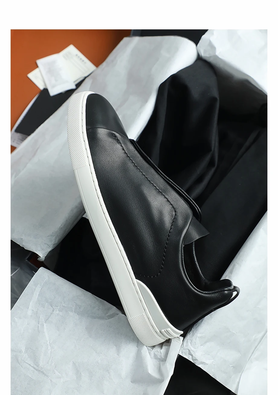 Real leather men’s casual skateboarding shoes hiking flat footed low top sports shoes men’s off white loafers lazy white shoes