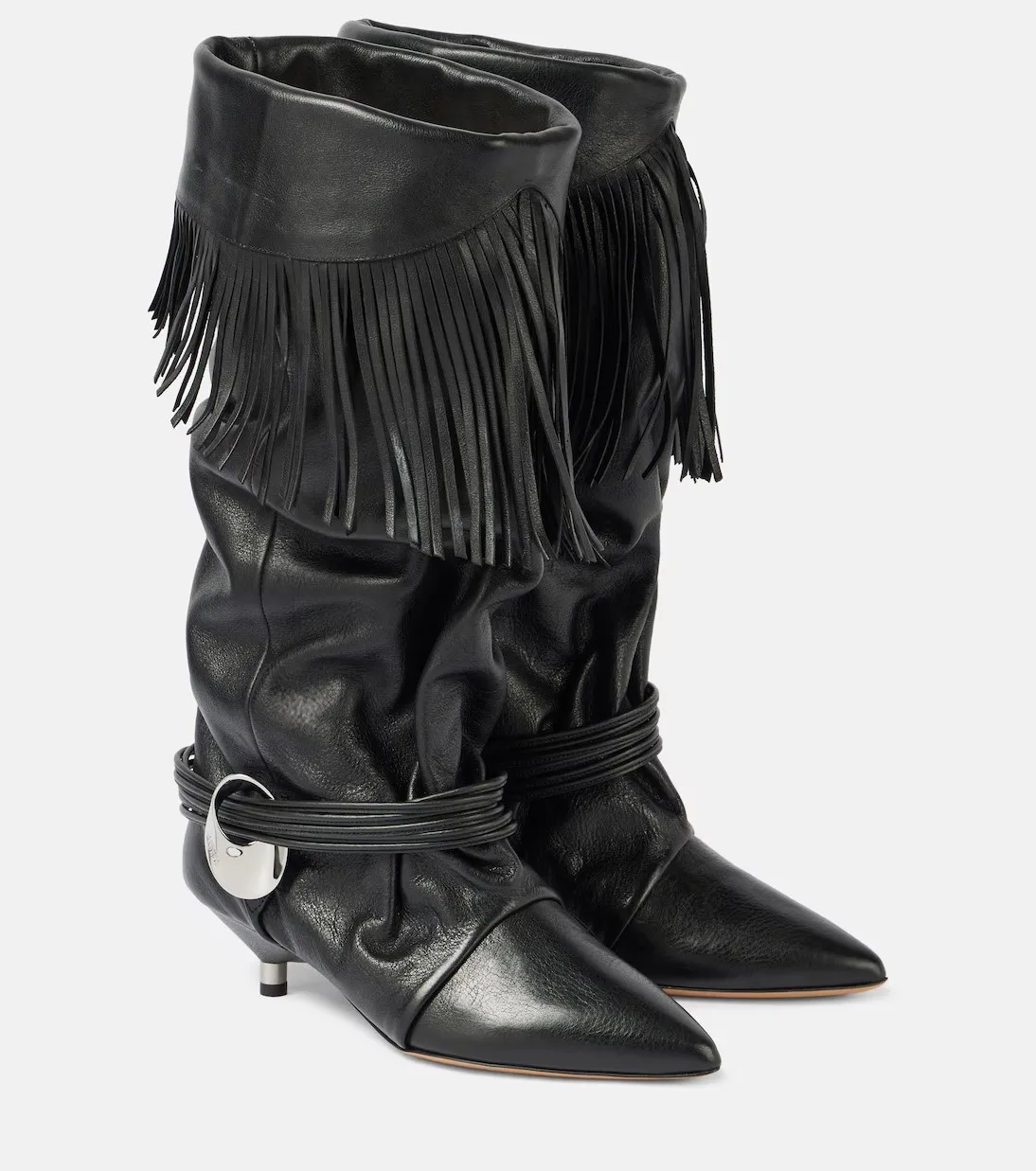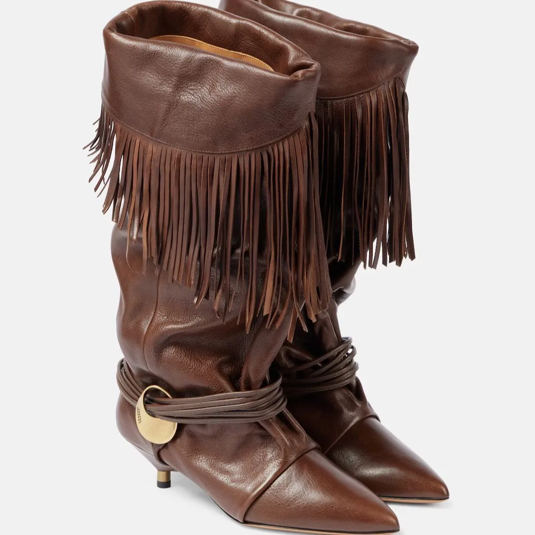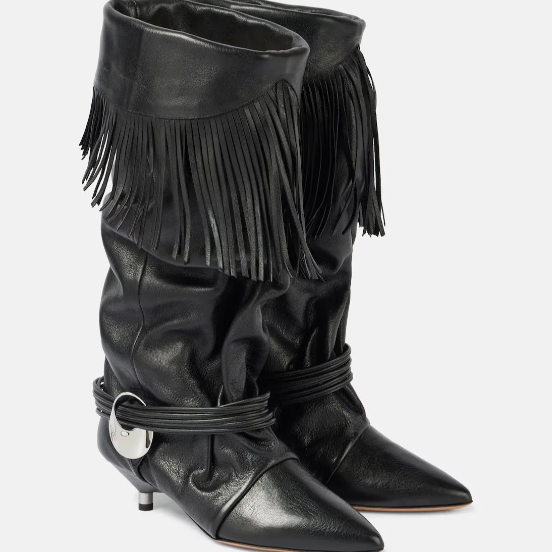Tassel Cowboy Boots Soft Leather Botas Mujer Point Toe Leather Bottes Femmes Round Pendant Bota Feminina Design Mid Calf Botines